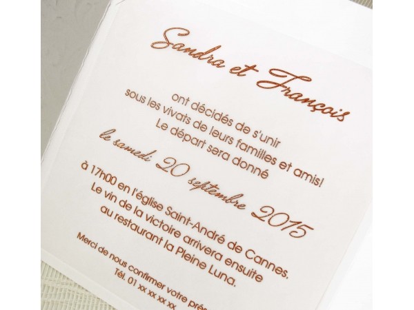 Invitatie de nunta eleganta ce contine coperta incriptionata.