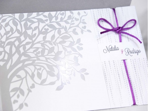 Copacul iubirii este lucrat in folio crem peste tipar gri. In interior pe partea stanga se imprima textul, iar pe partea dreapta se poate atasa poza dorita.