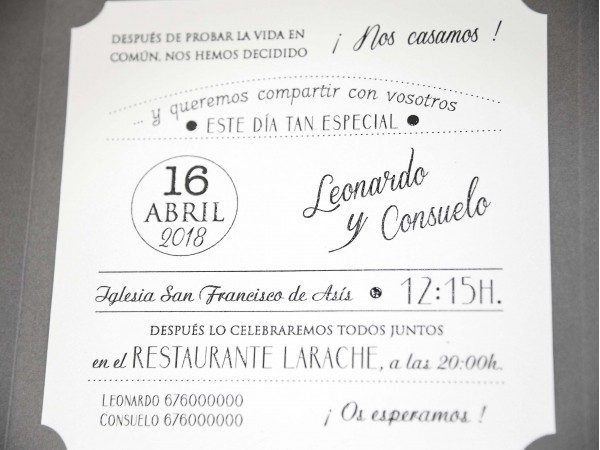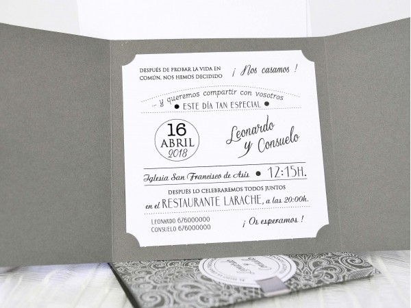 Invitatie moderna si eleganta ce se deschide pe orizontala.