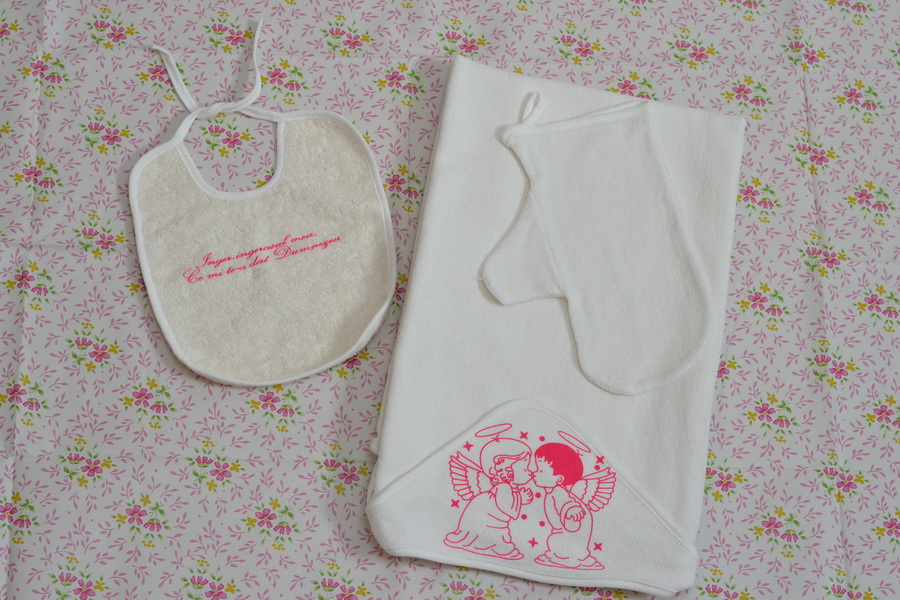 Set prosopel cu ingerasi, babetica cu rugaciune si manusa.