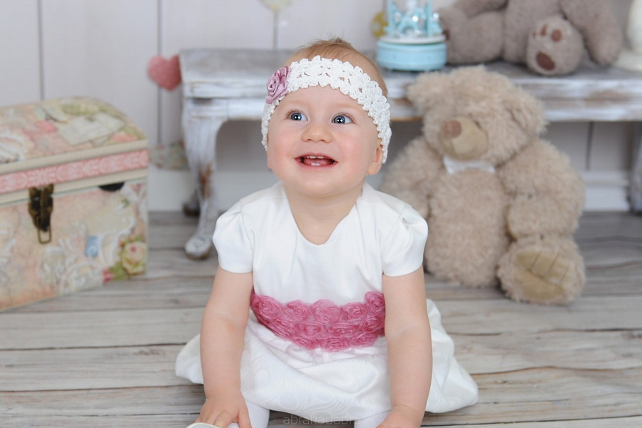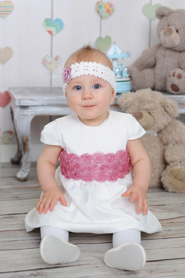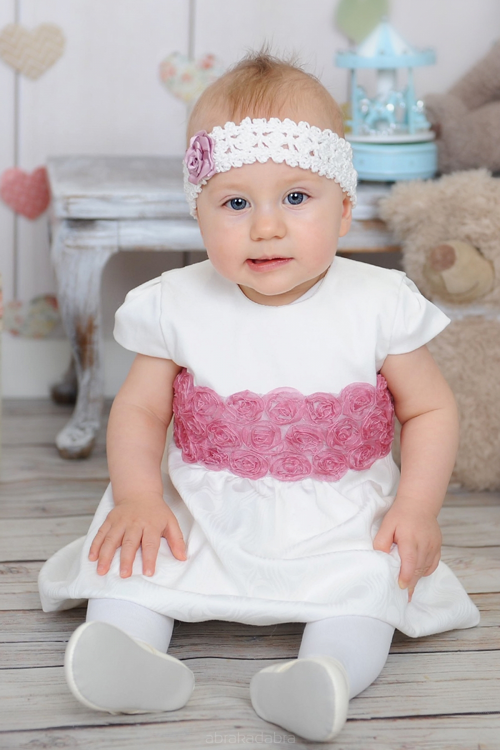 Descriere produs: Rochita de botez impresionanta, decorata cu trandafiri roz.