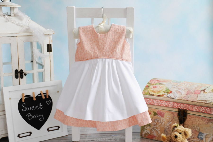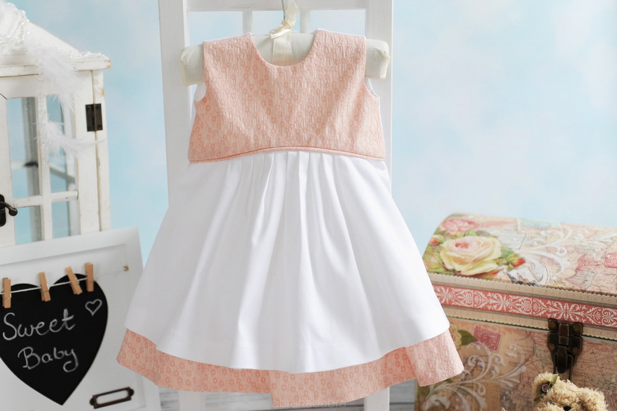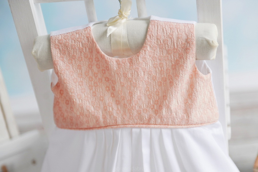 Descriere produs: Rochita alba cu broderii de culoare roz.