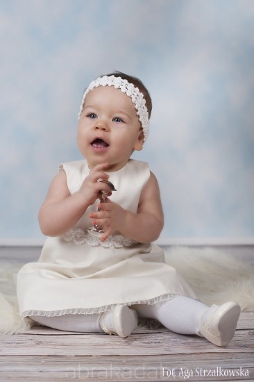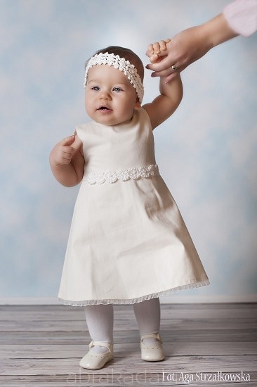 Descriere produs: Rochita delicata din bumbac in nuante de crem cu cordon crosetat. Marime: 62